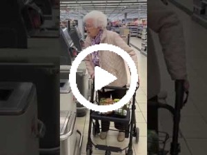 Das findet die Oma gar nicht witzig. Leider wird das mit den Selbstscanner-Kassen immer mehr Realität